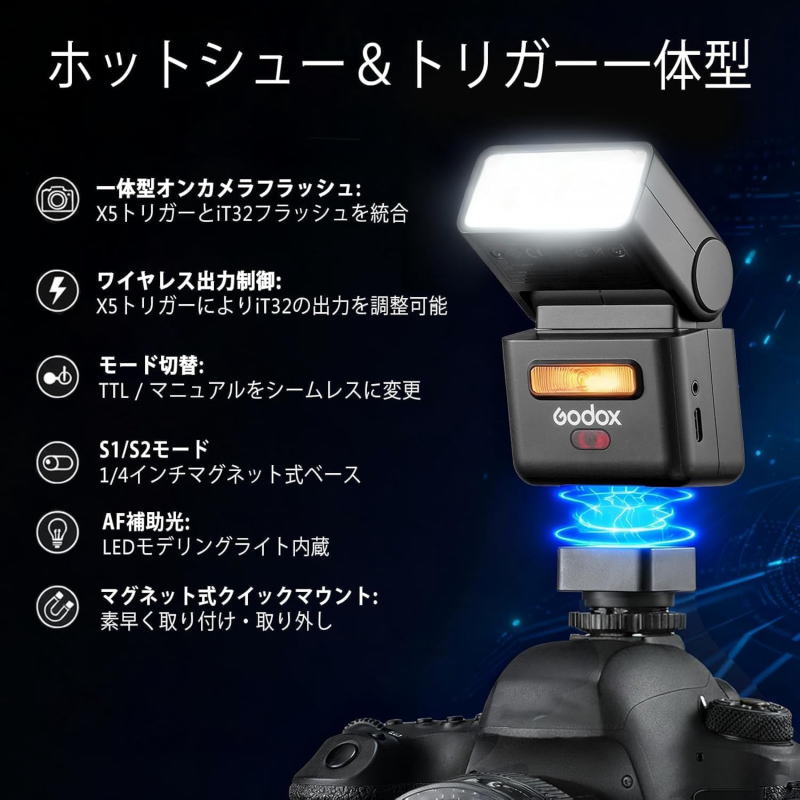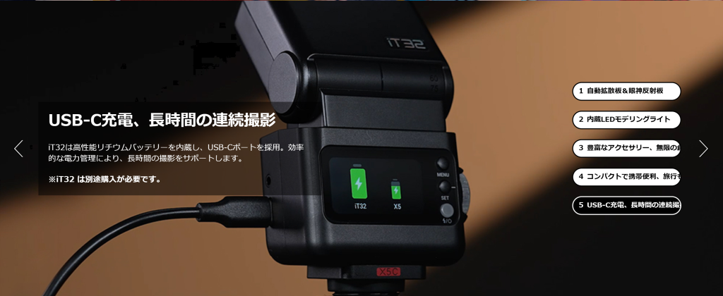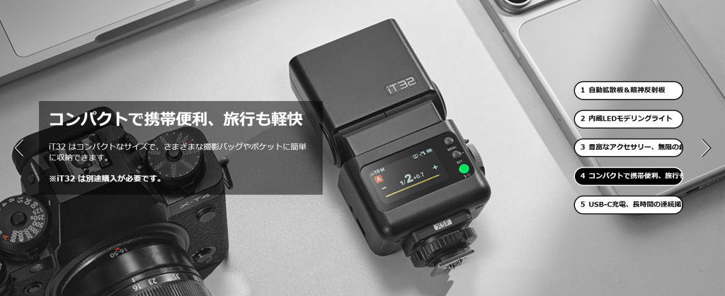 GodoxのiT30Pro-Nをオンカメラでマニュアル発光 発光量:1/2